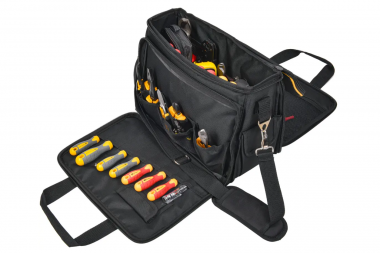 Сумка монтажника универсальная BG-04 предназначена для удобной и безопасной транспортировки инструмента при выездных работах. Сумка выполнена из ткани полиэстер 600D Оксфорд, обладающей высокой износостойкостью и влагозащитой. Тканевые ручки и наплечник с анатомической вставкой на ремне позволят комфортно переносить сумку. Сумка имеет жесткое дно с резиновыми ножками, а также 3 отдела с большим количеством карманов для удобного расположения инструмента.