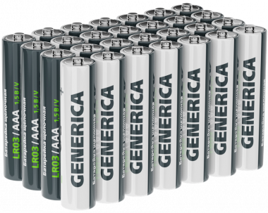 Батарейки щелочные мизинчиковые GENERICA AAA / LR03, 28 шт. в картонном боксе. Батарейки Generica созданы с использованием широко распространённых технологий. Это позволило достичь идеального баланса между ценой и качеством. Батарейки Generica производятся в соответствии с международным стандартом IEC и проходят контроль качества для каждой партии. Батарейки подходят для использования в часах, игрушках, пультах, кухонных и напольных весах, фонарях, игровых консолях, компьютерных мышках, клавиатуре, счетчиках газа, воды, электрических щетках и других устройствах. Соответствуют ГОСТ12.2.007.12, ГОСТ 24721, ГОСТ Р МЭК 60086-1 (IEC 60086-1).