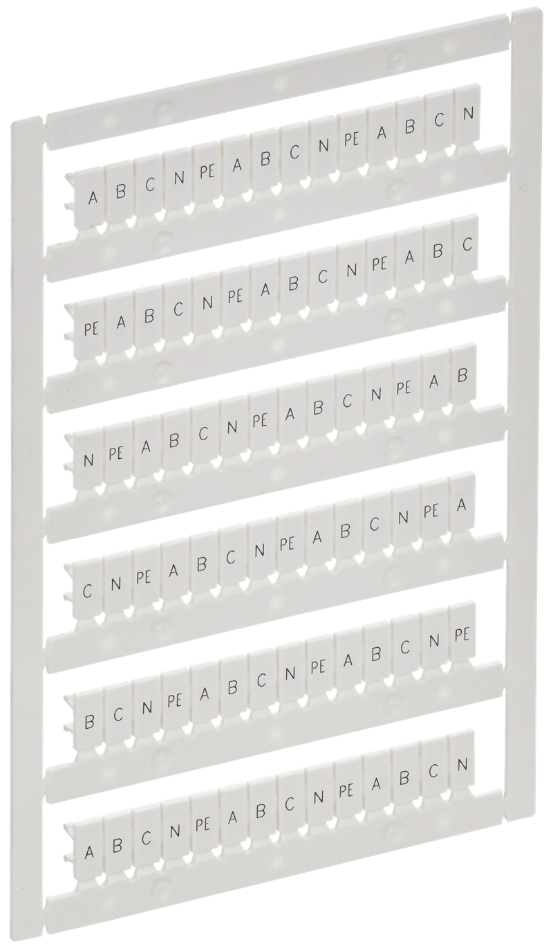 Маркеры ARMAFIX используются для маркировки рядов клеммных колодок ARMAFIX в системах распределения. Устанавливаются в соответствующие пазы клеммы. Выполнены в виде пластин. Каждая площадка может отсоединяться друг от друга. Совместимы с клеммами ARMAFIX CTS 2,5мм2, CP 2,5мм2. На маркерах нанесены обозначения "A, B, C, N, PE". Печать выполнена лазером, который обеспечивает долговечную и нестираемую маркировку. Изготавливаются из поликарбоната.