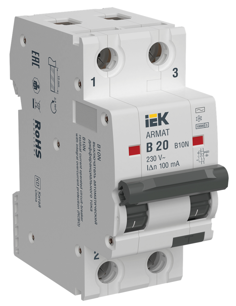 IEK AR-B10N-2-B020C100 ARMAT АВДТ B10N 2P B20 100мА тип AC