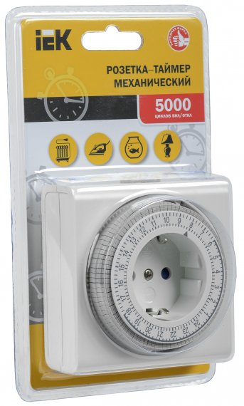 Розетки-таймеры механические предназначены для отсчёта интервалов времени, автоматического включения/отключения электроприборов через заданный промежуток времени в течение суток.