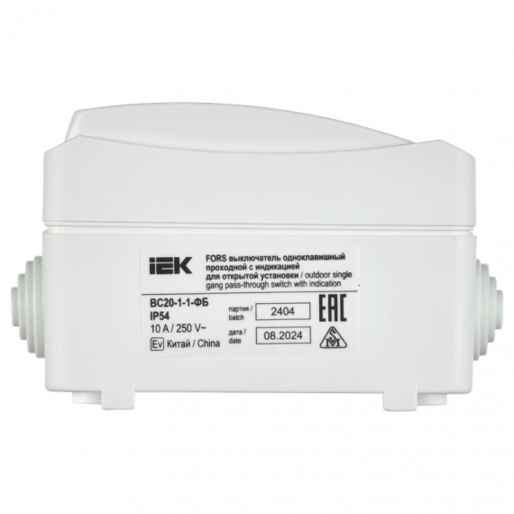FORS Выкл. 1-кл. прох. с инд. о/у IP54 ВС20-1-1-ФБ бел. IEK
