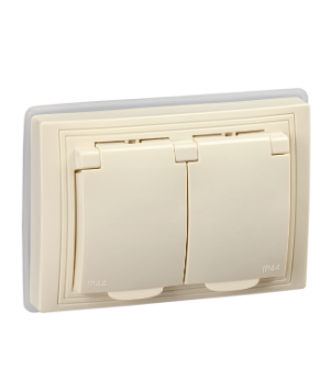 IEK KVARTA Розетка 2-местная РСбш12-3-ККм-44 с заземляющим контактом с защитными шторками и крышкой 16А IP44 кремовый KV-R26-16-44-K33