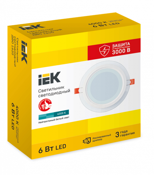 IEK LDVO0-1620-06-4000-K01 Светильник LED ДВО 1620 со стекл. круг 6Вт 4000К IP20