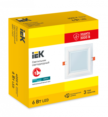 Светильник LED ДВО 1623 со стекл. квадр. 6Вт 4000К IP20 IEK