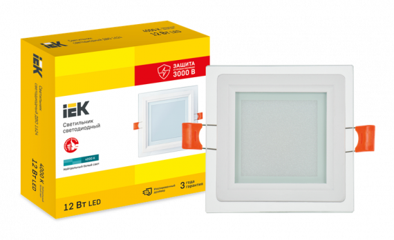 IEK LDVO0-1624-12-4000-K01 Светильник LED ДВО 1624 со стекл. квадр. 12Вт 4000К IP20