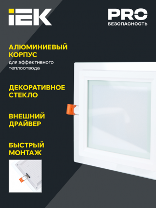 Светильник LED ДВО 1625 со стекл. квадр. 18Вт 4000К IP20 IEK