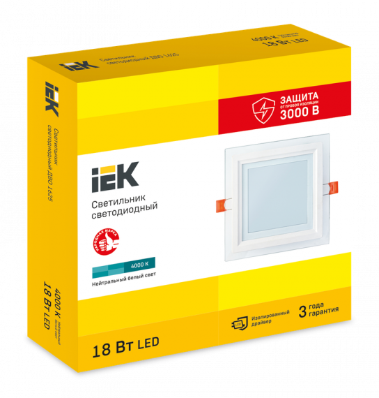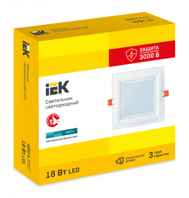 IEK LDVO0-1625-18-4000-K01 Светильник LED ДВО 1625 со стекл. квадр. 18Вт 4000К IP20