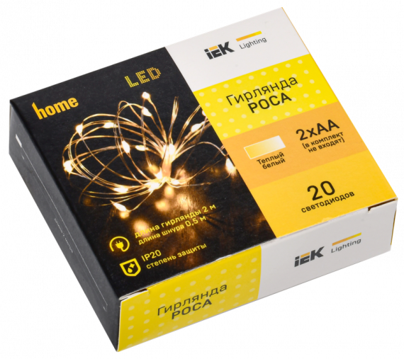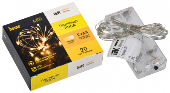 IEK LGDB500-1-020-02-T-B-20 Гирлянда роса 2м 20WW IP20 прозрачный шнур 0,3м 2AA