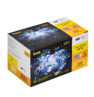 IEK LIGHTING Гирлянда нить 10м 100 светодиодов RGB свет IP44 прозрачный шнур 3м 230В контроллер 8 сцен LGDU111-3-100-10-T-S-44
