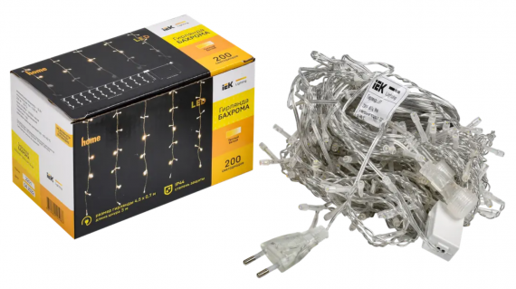 IEK LIGHTING Гирлянда бахрома 4,5х0,7м 200 светодиодов теплый белый свет IP44 прозрачный шнур 3м 230В транзит LGDU301-1-200-L3-T-S-44