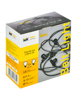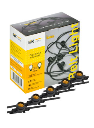 IEK LIGHTING Гирлянда белт-лайт 5м 15 патронов E27 без ламп IP65 черный шнур 2м 230В транзит LGDU601-0-015-05-B-S-65