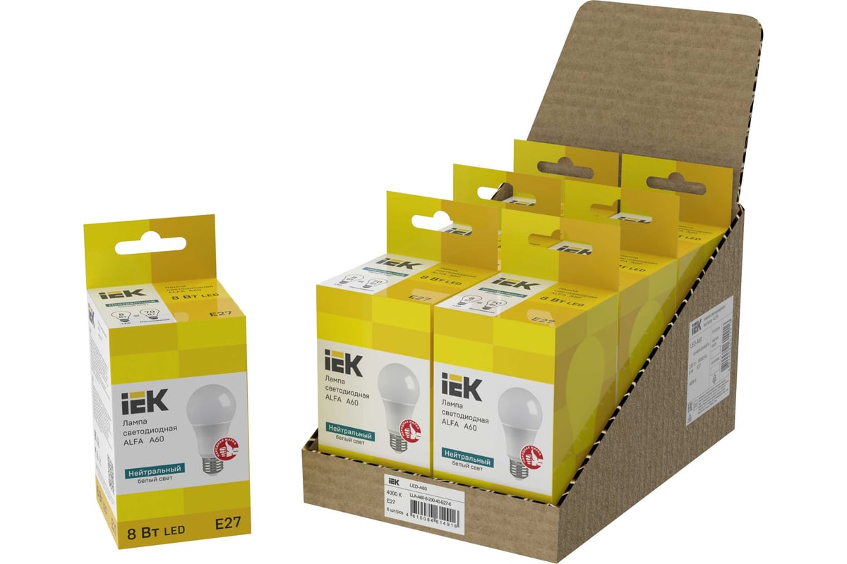 Лампа LED ALFA A60 груша 8Вт 230В 4000К E27 (6шт) IEK