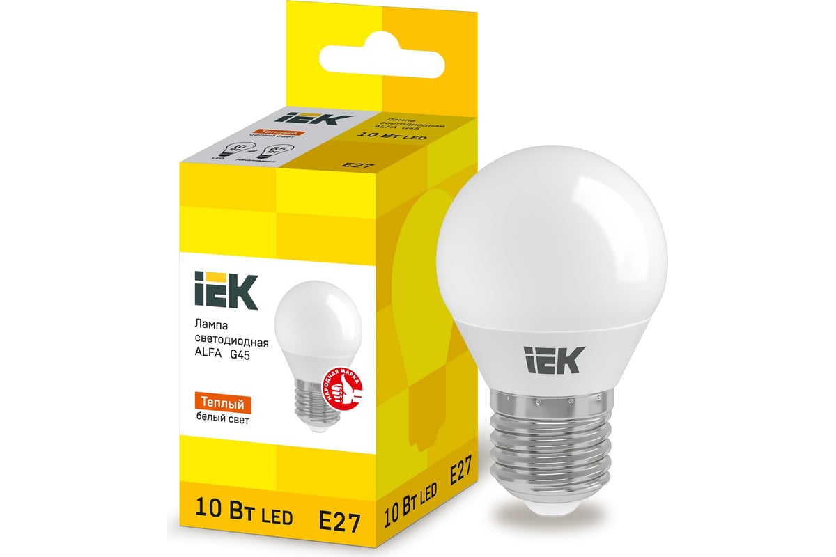 Лампа LED ALFA G45 шар 10Вт 230В 3000К E27 IEK предназначена для использования в осветительных приборах наружного и внутреннего освещения объектов промышленного, коммерческого и бытового назначения.