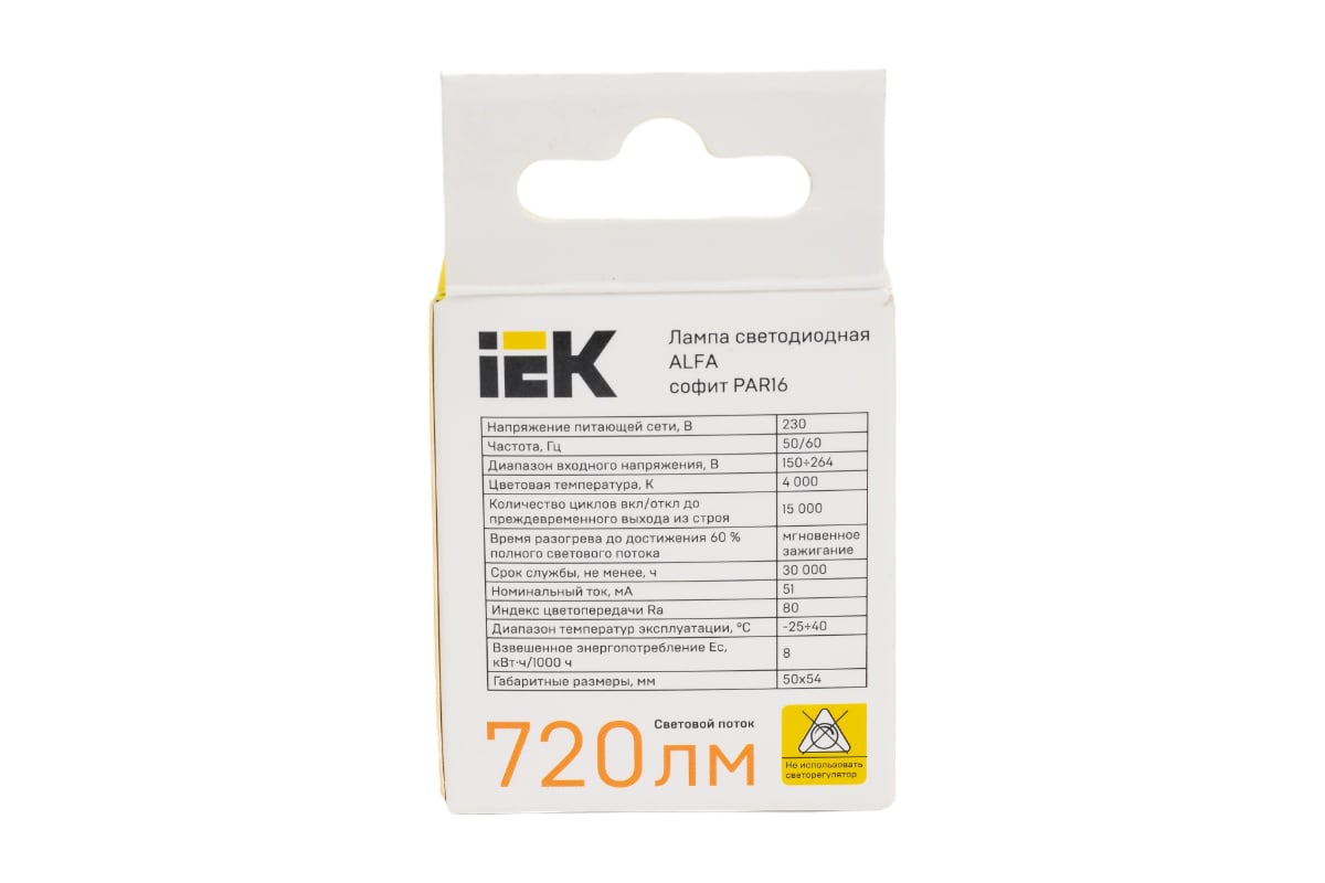 IEK LLA-PAR16-8-230-4-GU10-6 Лампа LED ALFA PAR16 софит 8Вт 230В 4000К GU10