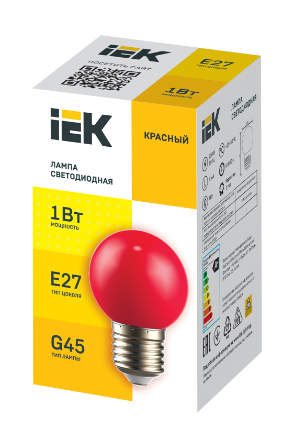 IEK LIGHTING Лампа светодиодная декоративная G45 шар 1Вт 230В красный E27 LLE-G45-1-230-R-E27