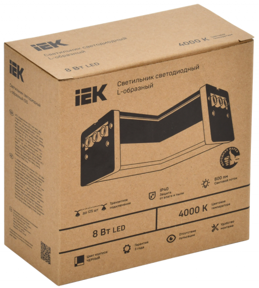 Светильник LED L-образн. 1010 8Вт 4000К 117х117мм чер. IEK