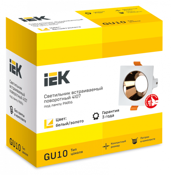 Светильник 4107 встр. поворотн. GU10 белый/золото пласт. IEK
