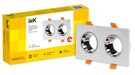 Светильник 4108 встр. поворотн. 2хGU10 белый/хром пласт. IEK