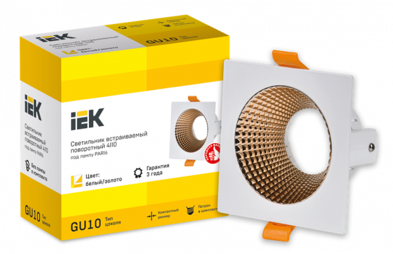 Светильник 4110 встр. поворотн. GU10 белый/золото пласт. IEK