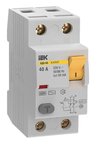 УЗО KARAT ВД3-63 2P 40А 30мА 6кА тип AC IEK