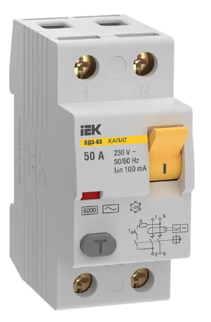 УЗО KARAT ВД3-63 2P 50А 100мА 6кА тип AC IEK