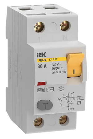 УЗО KARAT ВД3-63 2P 80А 300мА 6кА тип AC IEK