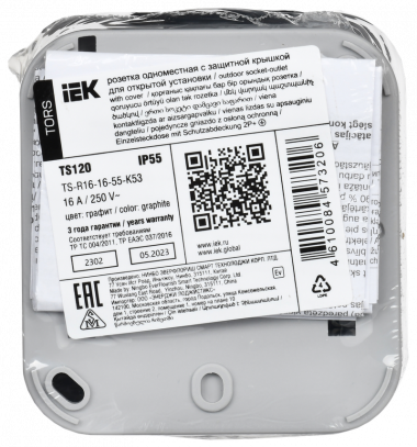 TORS Розетка 1-я с з/к кр. 16А IP55 TS120 графит IEK