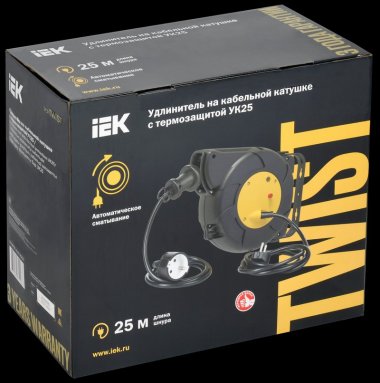 TWIST Катушка УК25 1мест. 2P+PE/25м+2м 3х1,5мм2 автосм. IEK