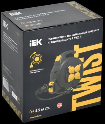 TWIST Катушка УК15 2P+PE/15м 3х1,5мм2 КГ автосм. IP44 IEK