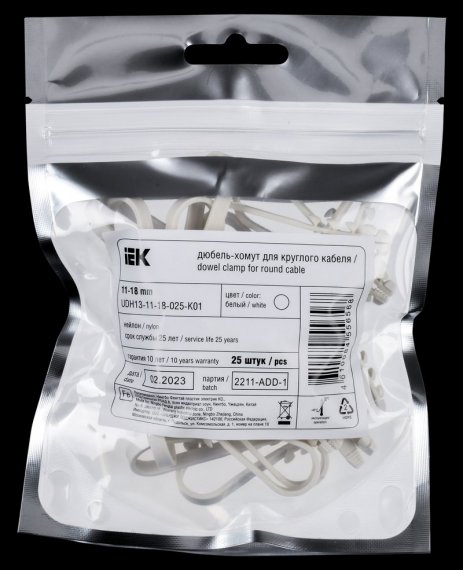 Дюбель-хомут 11-18мм круг. каб. нейл. белый (25шт/упак) IEK
