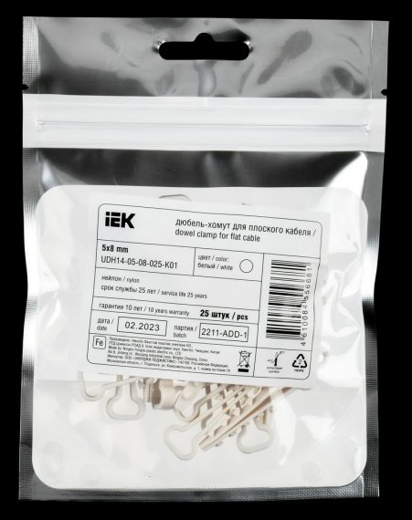 Дюбель-хомут 5х8мм плоск. каб. нейл. белый (25шт/упак) IEK