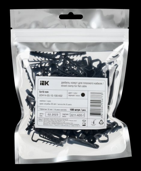 IEK UDH14-05-10-100-K02 Дюбель-хомут 5х10мм плоск. каб. нейл. черн.