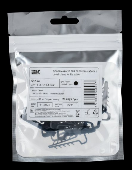 Дюбель-хомут 6х12мм плоск. каб. нейл. черн. (25шт/упак) IEK