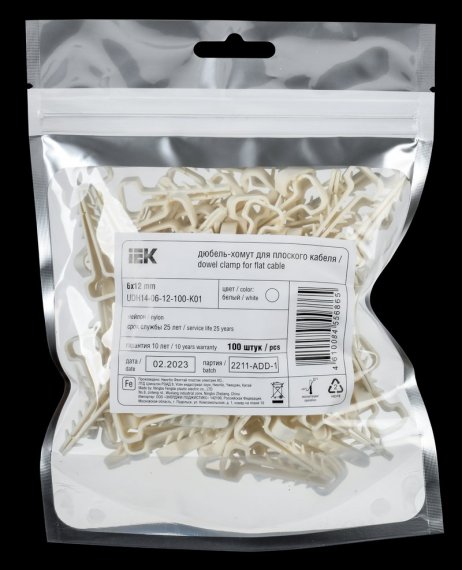 Дюбель-хомут 6х12мм плоск. каб. нейл. белый (100шт/упак) IEK