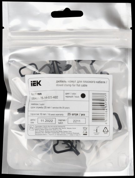 Дюбель-хомут 6х14мм плоск. каб. нейл. черн. (25шт/упак) IEK