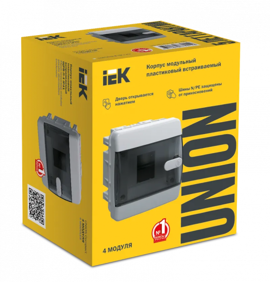 Наименование | UNION Compact Корпус пласт. ЩРВ-П-4 IP41 черн. пр. дв. IEK |
