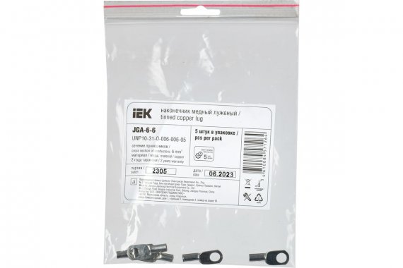 IEK UNP10-31-O-006-006-05 Наконечник медный луженый JGA-6-6 (ТМЛ)