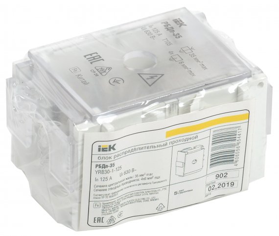 IEK Блок распределительный проходной РБДп-35 125/50А на DIN-рейку (1х35-4х6мм2), YRB30-1-125