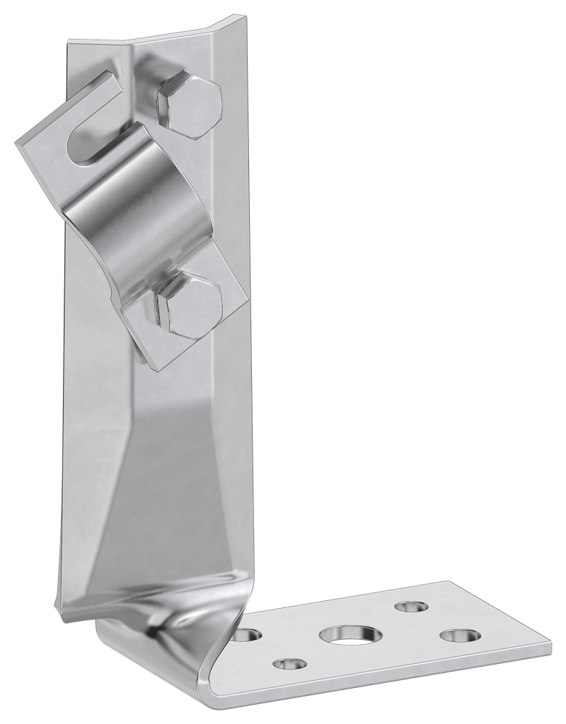 Держатель угловой скрученный с болтовым зажимом предназначен для монтажа проводника на горизонтальные, вертикальные или наклонные поверхности. Скрученная конструкция держателя позволяет крепить проводник на узкие парапеты. Монтируется на поверхности при помощи саморезов. Зажим проводника происходит при помощи болтового соединения. Материал корпуса - нержавеющая сталь.
