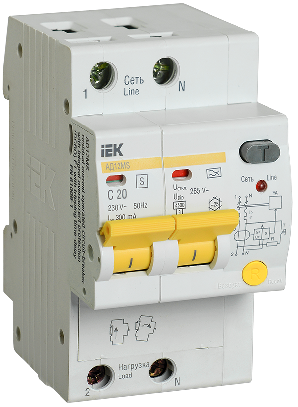 Диф.автомат АД12MS 2Р 20А 300мА IEK